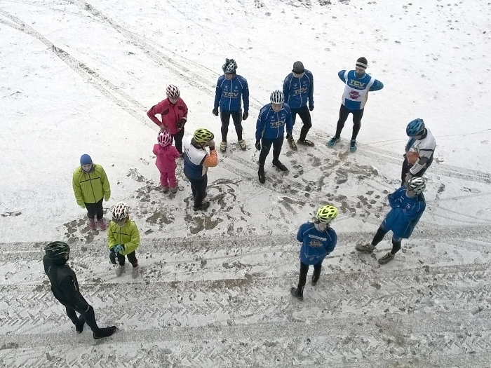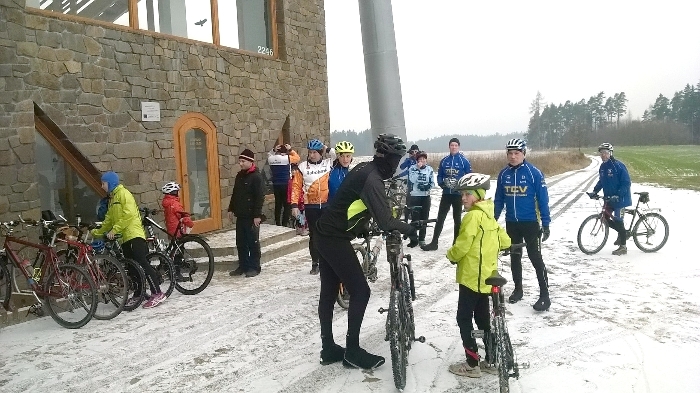 Je tu první den roku 2016 a hned začínáme sportovně. Téměř po dvaceti letech jsme konečně zase vyjeli na novoroční cyklistickou vyjížďku. Zvolili jsme nenáročnou trasu, a to po cyklostezce na rozhlednu na Rýdově kopci. Jelo nás dvacet jedna všech věkových kategorií, od našich nejmenších nadělí až po jednoho důchodce J. Půlnoční decentní sněhová nadílka konečně přispěla k pocitu zimy a k určité nejistotě na kolech. Nicméně všichni, bez rozdílu věku, absolvovali celou trasu bez sebemenší úhony. V cíli naší vyjížďky jsme se pozdravili s dalšími sportovními kolegy z JH, a to s orientačními běžci. Vystoupili jsme na dominantu Rýdova kopce a pokochali jsme se okolní krajinou. Po sestupu jsme se vyfotili na památku obnovené tradice a ujížděli zpět do JH ke svátečnímu uzenému.